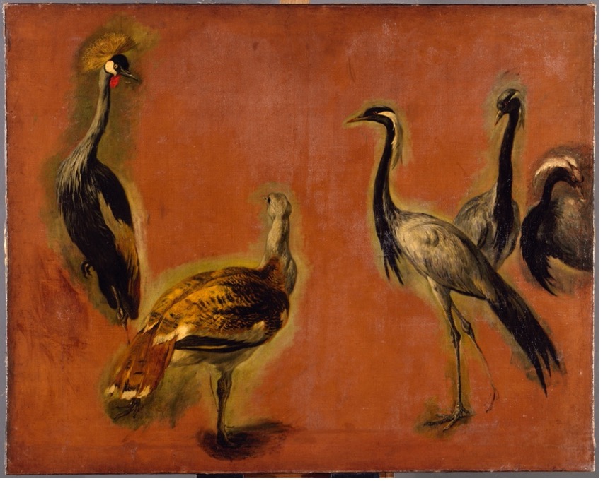The charismatic stars of the animal collection were the graceful and enticing Demoiselles of Numidia (the crown-crested crane), posed in a tableau by Pieter Boel with the “royal bird” (the crown-crested crane) and the (male-coded) bustard, almost like a scene at court (Fig. 4). The crane also drew the attention of Jean de La Fontaine (who wrote of their “good grace and beauty” in Les Amours de Psyché et Cupidon) and Madeleine de Scudery (who called them “Egyptian chickens” in La Promenade de Versailles), on theircontemporaneous (narrative) visits to the gardens of Versailles in 1669. The Royal Academy of Sciences, which since its founding in 1667 performed regular dissections of the animals of the Menagerie, paused to note the beguiling attentiveness of the birds to human interaction, before diving deep into anatomical descriptions of six specimens: