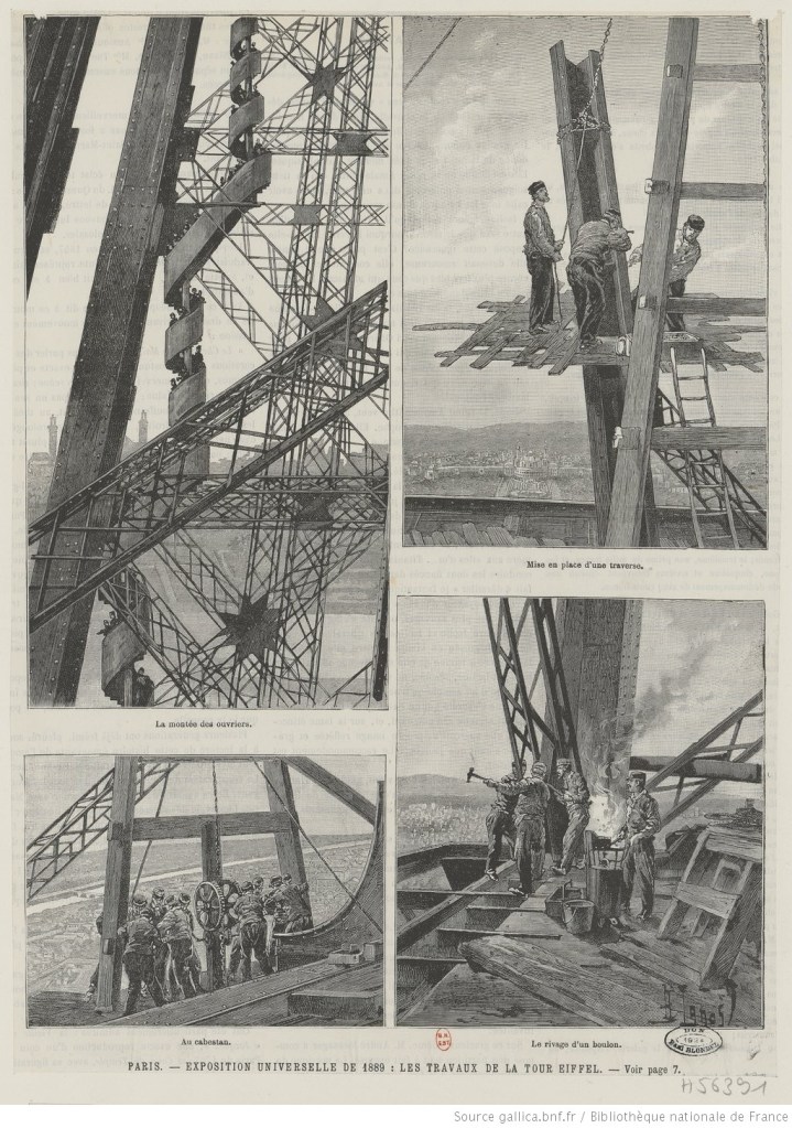 Workers in the Eiffel Tower construction site. Source: gallica.bnf.fr.