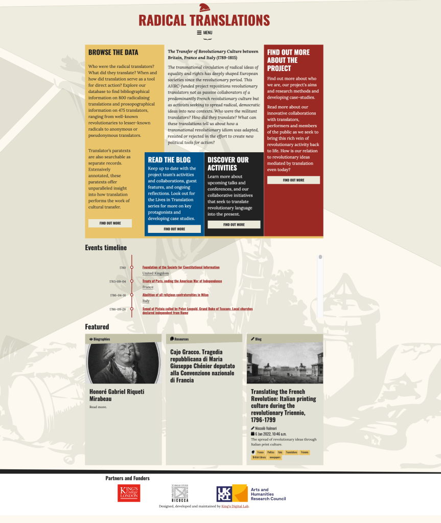 Besides the interactive, metadata-rich, corpus of radical texts and their translations, our project website also publishes regular blogs on featured translators, and other findings, as well as news of student-centred translation workshops and performances, such as those focusing on the earliest political manifesto, Sylvain Maréchal’s Manifeste des Égaux (1796). For those wishing to join in the detective work, we welcome any collaboration in identifying “unknown” sources and “anonymous” translators, as well as suggestions for new entries we may have overlooked, or corrections to existing ones.