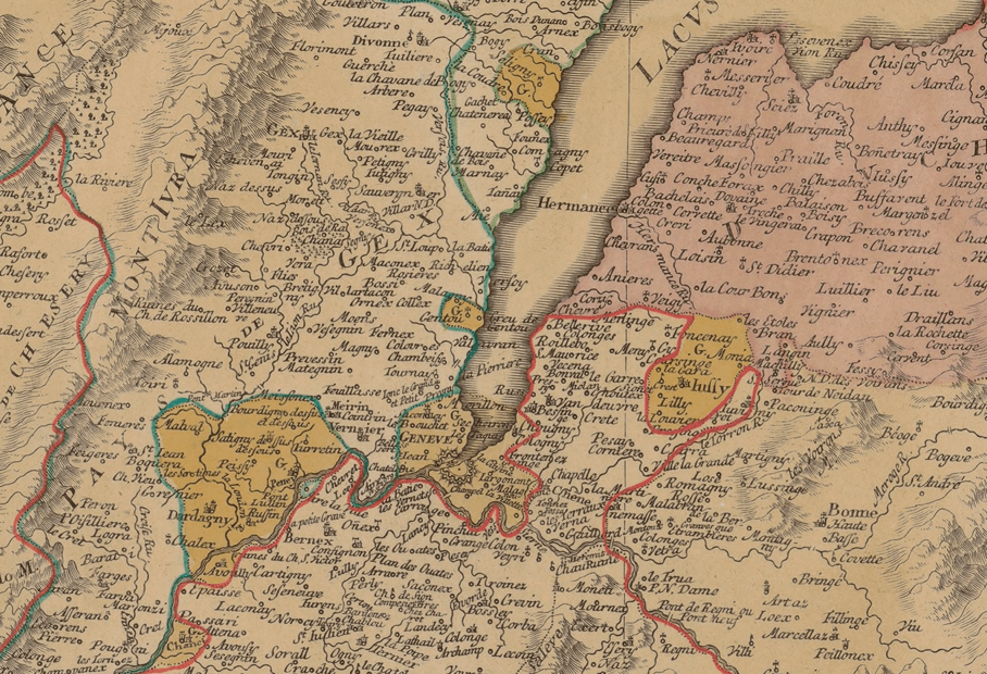 It was in this moment of philosophical doubt, which gripped French public opinion in the aftermath of the Seven Years’ War, that the project for the ideal city of Versoix was born.[6] From a simple geographical point of view, it was a project for the inland colonization of French territory.[7] It took place on the north shore of Lake Geneva, at the end of a small strip of land that separated Calvin’s city from the Helvetic Corps. This territory is commonly known as Pays de Gex and includes Voltaire’s famous château, located in Ferney since 1758.